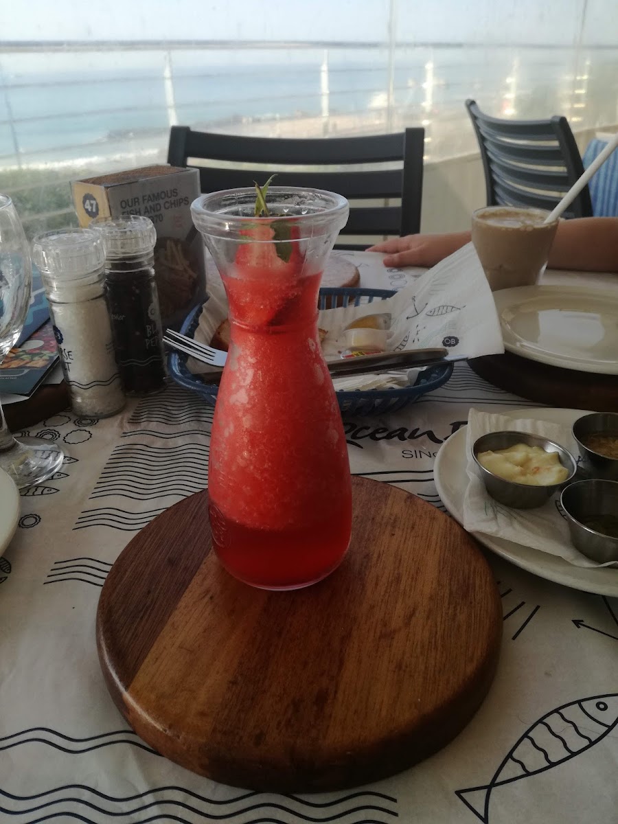 Sunday afternoon lunch at the bay because it was a beautiful day! My fish (Kingclip SA) was a little overdone! My husband's fish was barely seared! ....and I was halfway through my dish when his was served